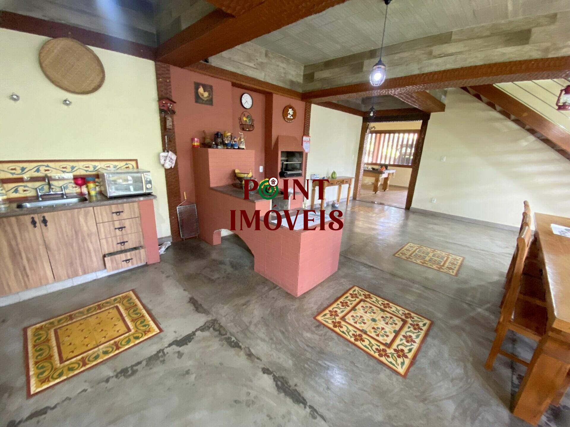 Excelente casa de 02 pavimentos, totalizando 550m² de área construída, terreno de 8.500m².Próximo ao centro comercial de Macacos. Imóvel com excelente potencial para ser segmento de pousada com espaço para recreação, eventos, entre outros. Casa 04 quartos, sendo 01 suíte master com ar condicionado, lareira e varanda com linda vista. São 01 suíte, 02 semi suítes, uma sala ampla, escritório, banheiro social, cozinha com bancadas em granito, área de serviço e despensa. Amplo salão com churrasqueira, espaço de jogos. 02 banheiros, conta com plantação com vegetação no fundo do terreno e a possibilidade de exploração do tamanho do terreno.